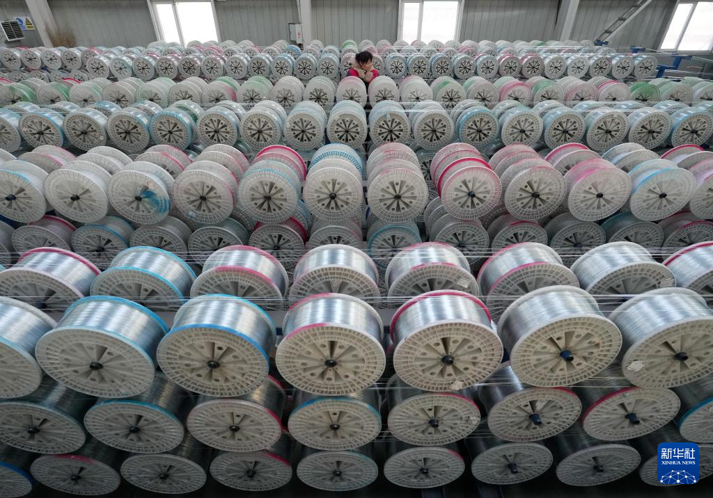 12月23日,工人在河北省迁安市鼎泰五金制造有限公司镀锌丝生产线上工作。