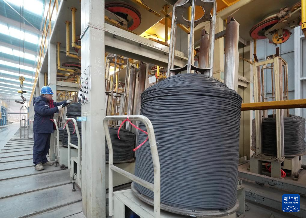 12月23日,工人在河北省迁安市鼎泰五金制造有限公司磷化丝生产线上工作。