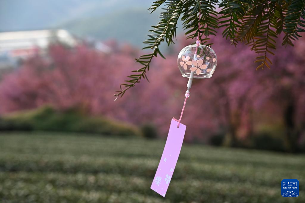 这是12月24日在无量山樱花谷拍摄的印有樱花图案的风铃。