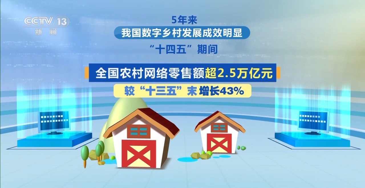 5年来,我国数字乡村发展成效明显,部署开展两批国家数字乡村试点,实施数字乡村强农惠农富农专项行动,“十四五”期间我国城乡互联网普及率差距较“十三五”末缩小8.2个百分点,农业生产信息化率从22.5%增至30%以上,全国农村网络零售额超2.5万亿元,较“十三五”末增长43%,远程医疗服务网络覆盖全国所有市县,城乡数字鸿沟加快弥合。