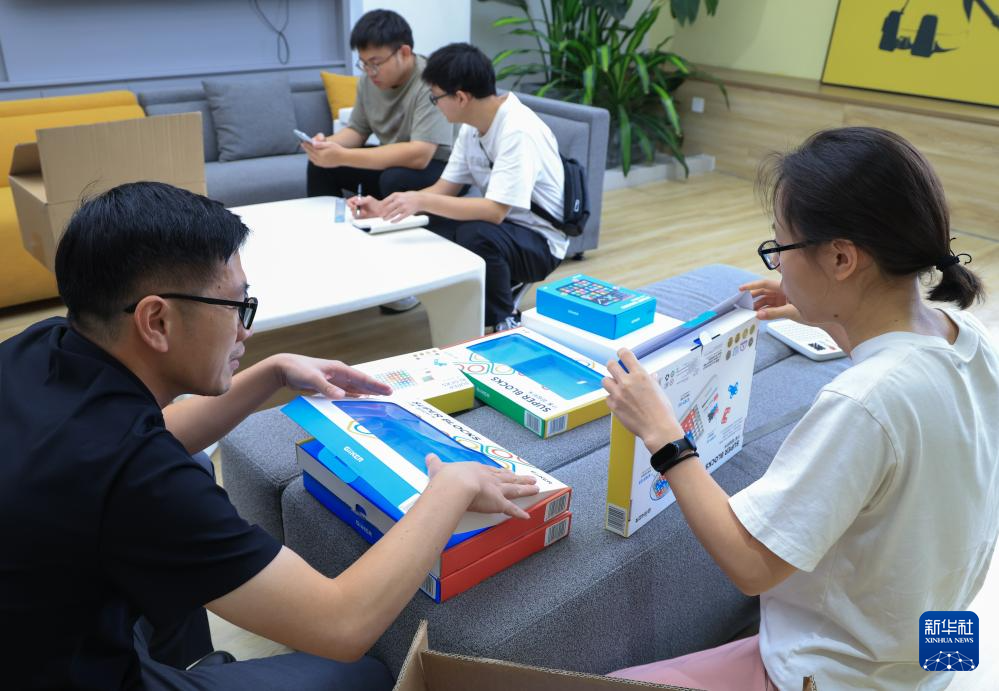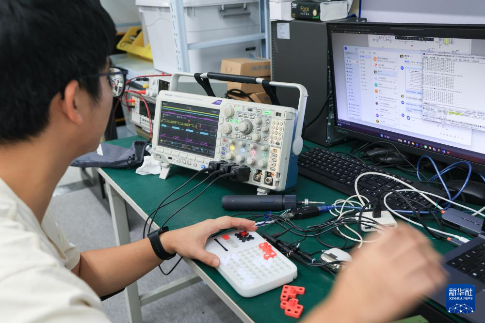 10月29日,在位于广东佛山顺德广东工业设计城的计客总部,研发人员对超级积木的硬件进行测试。