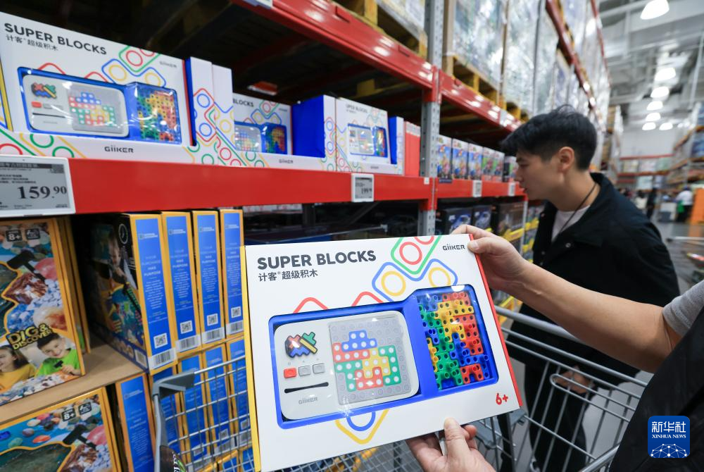 11月28日,在深圳前海的山姆超市,顾客选购货架上的计客超级积木。
