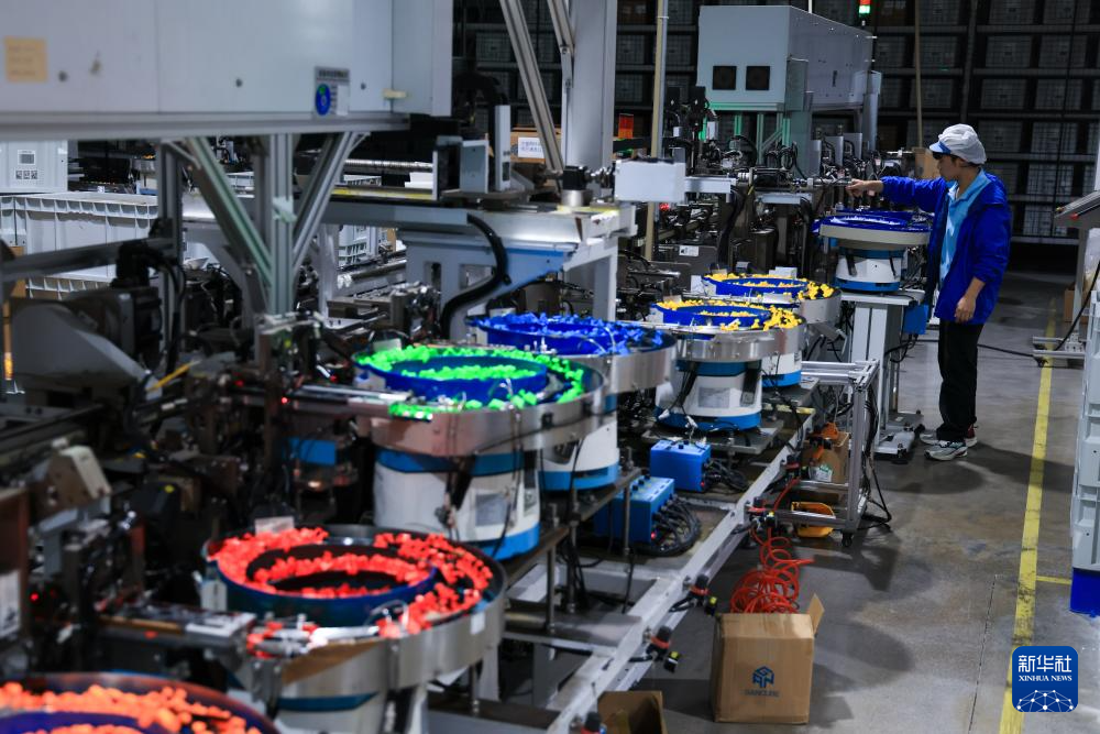 10月29日在广东佛山顺德淦源科技的智能制造基地拍摄的魔方自动化生产线。