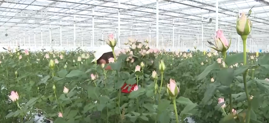 在河北邱县,玫瑰产业园的玫瑰鲜切花也迎来了销售旺季。采摘工人每天工作9个小时采摘玫瑰花,日销玫瑰超8万枝,直供京津冀市场。