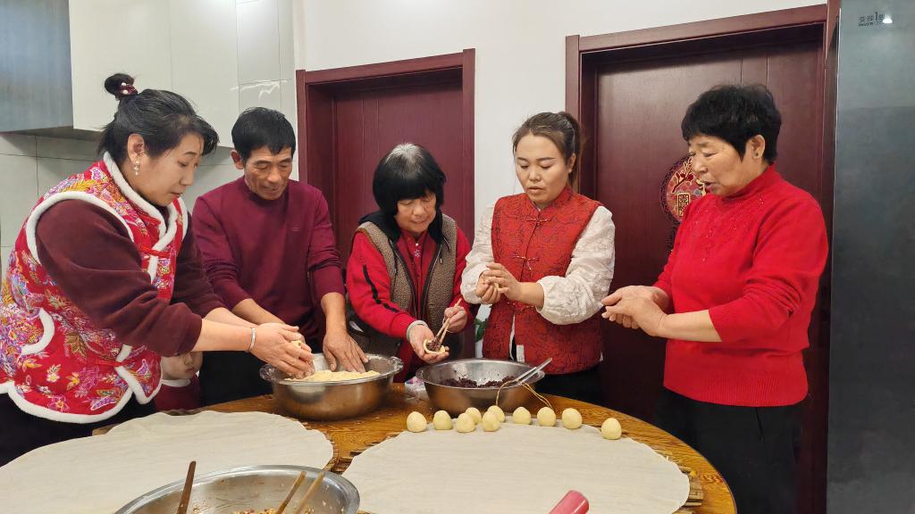 2025年12月31日晚,王宝维一家在一起包饺子。新华社发(李健鹏摄)