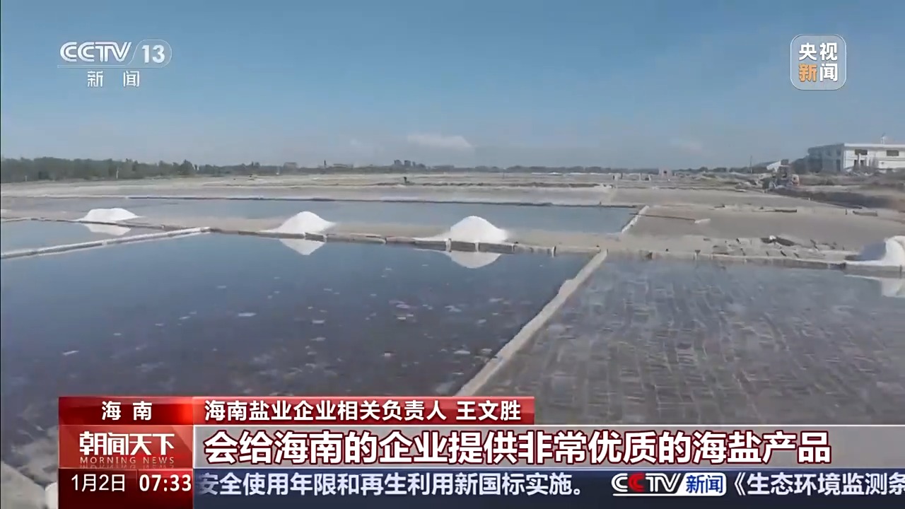 海南盐业企业相关负责人王文胜:我们现在已经被纳入海南首批自产货物清单企业,现在有4家企业正在合作。第二期整个盐田大概有9000吨的年产量,会给海南的企业提供非常优质的海盐产品。