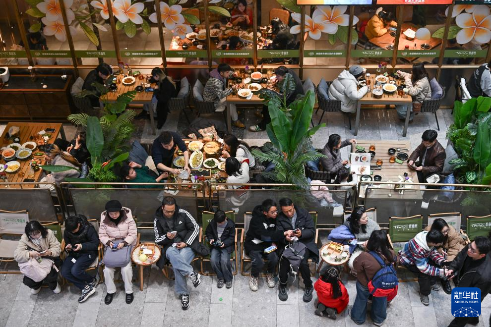 元旦假日期间,重庆各大商圈与商业街区客流量显著增加,不少市民选择前往商场购物、用餐、休闲娱乐,消费市场人气旺。