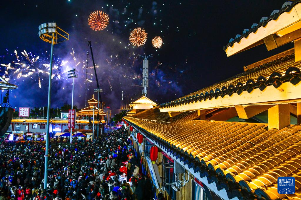 1月2日,人们在活动现场观看烟花表演。