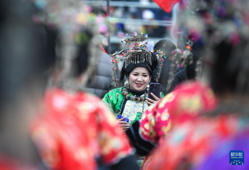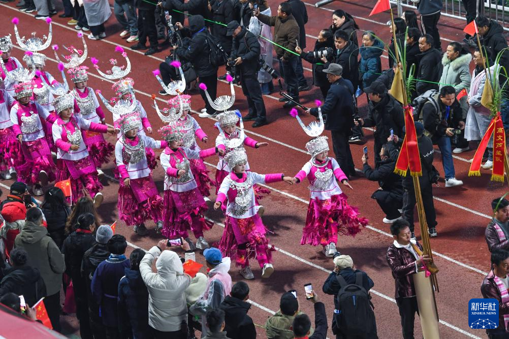 1月2日,苗族群众参加“村超”大巡游活动。