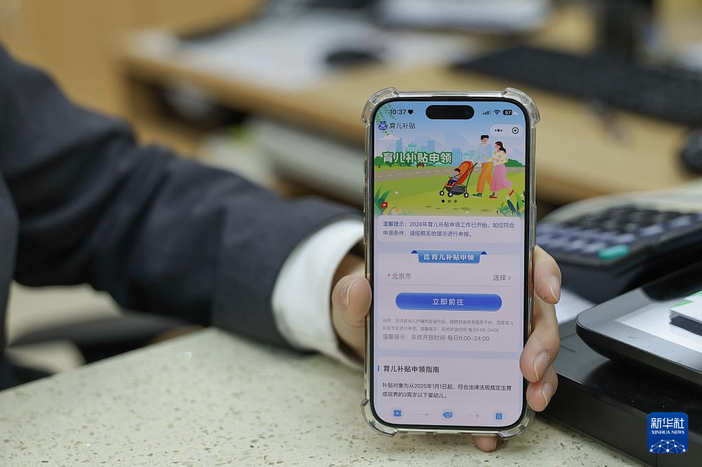 1月5日,工作人员在北京市西城区月坛街道政务服务中心展示“育儿补贴”小程序。
