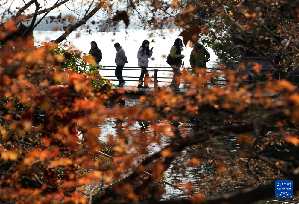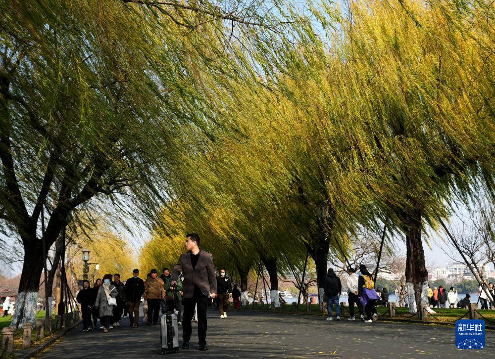 1月8日,游客在杭州西湖白堤游览。