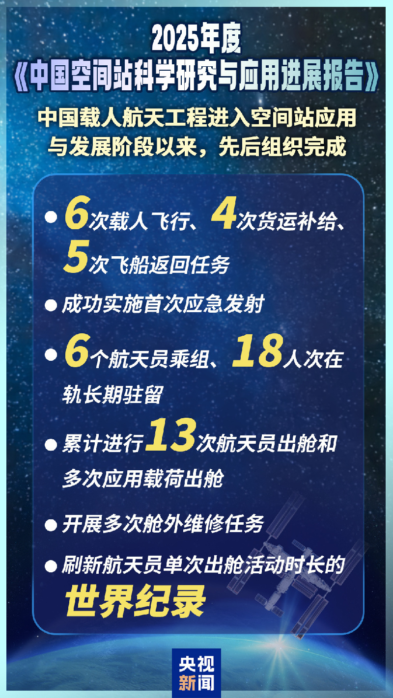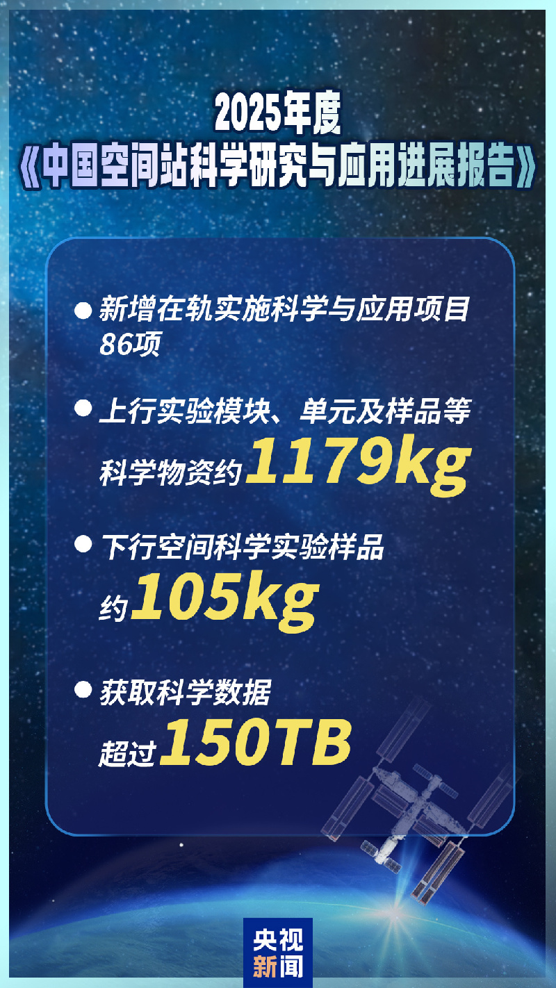 据中国载人航天工程办公室消息,北京时间2026年1月8日,中国载人航天工程办公室面向全社会发布了2025年度《中国空间站科学研究与应用进展报告》。>>全文