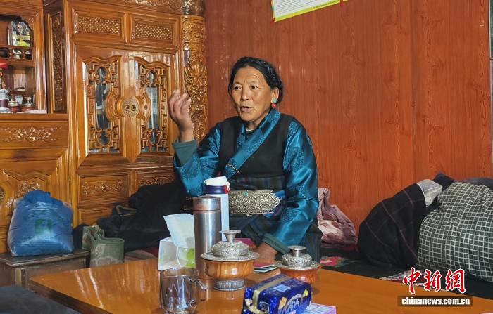 图为定日县长所乡森嘎村村民讲述搬进新家后的美好生活。贡桑拉姆摄