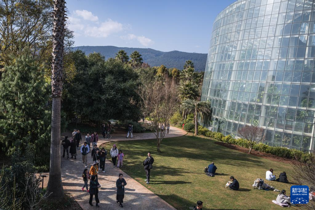 1月10日,云南昆明天气晴好,市民游客在冬日的暖阳中漫步于昆明植物园,领略自然美景,尽享惬意悠闲的周末时光。