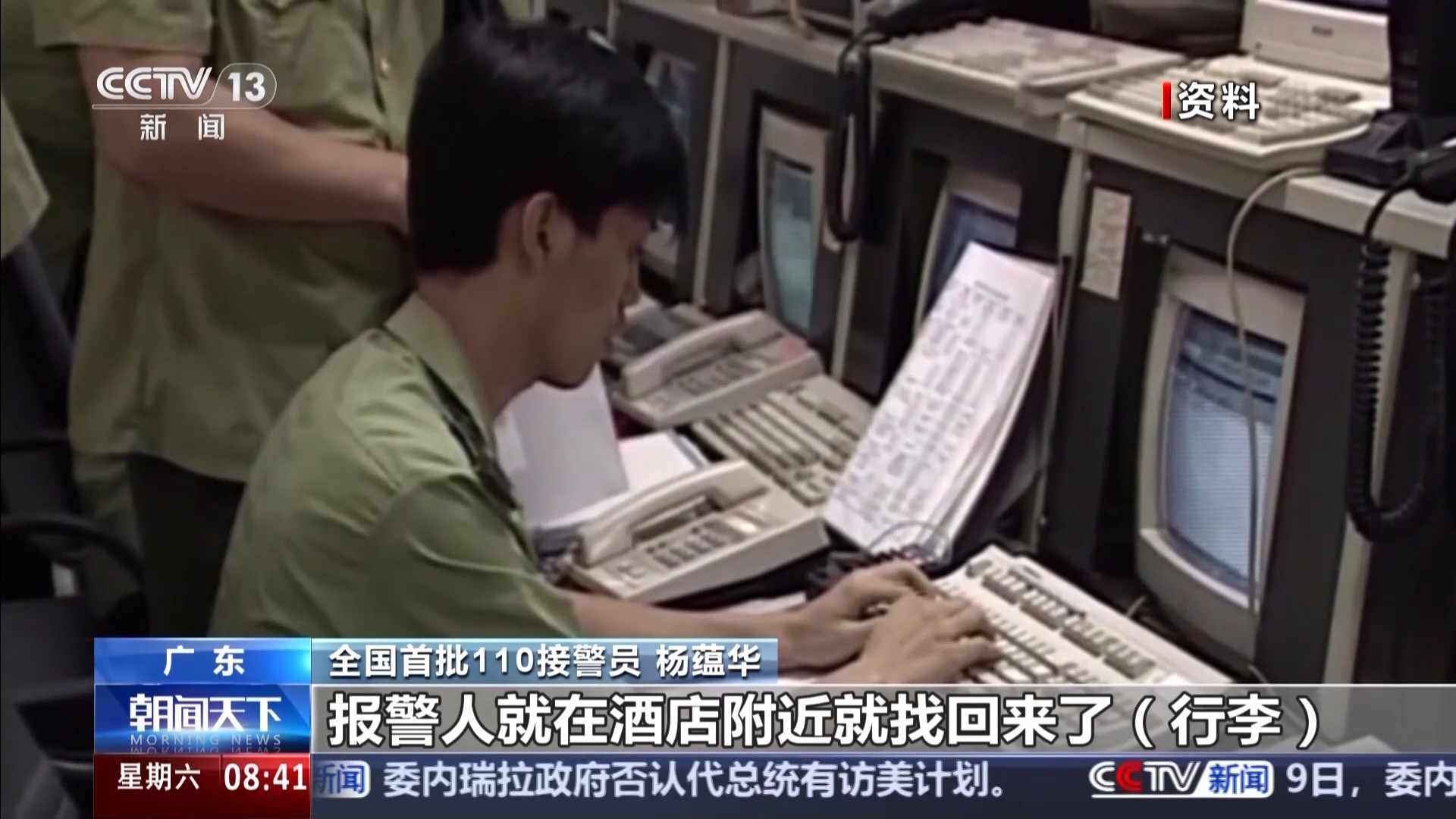 全国首批110接警员杨蕴华:第一宗报警电话在海珠广场,景园酒店,凌晨时分有个报警人的行李丢了,民警马上通知当地派出所,犯罪嫌疑人听到有人报警,知道警察过来了,慌乱之中就把他的行李丢下,然后自己就跑了,报警人就在酒店附近找回来了行李。