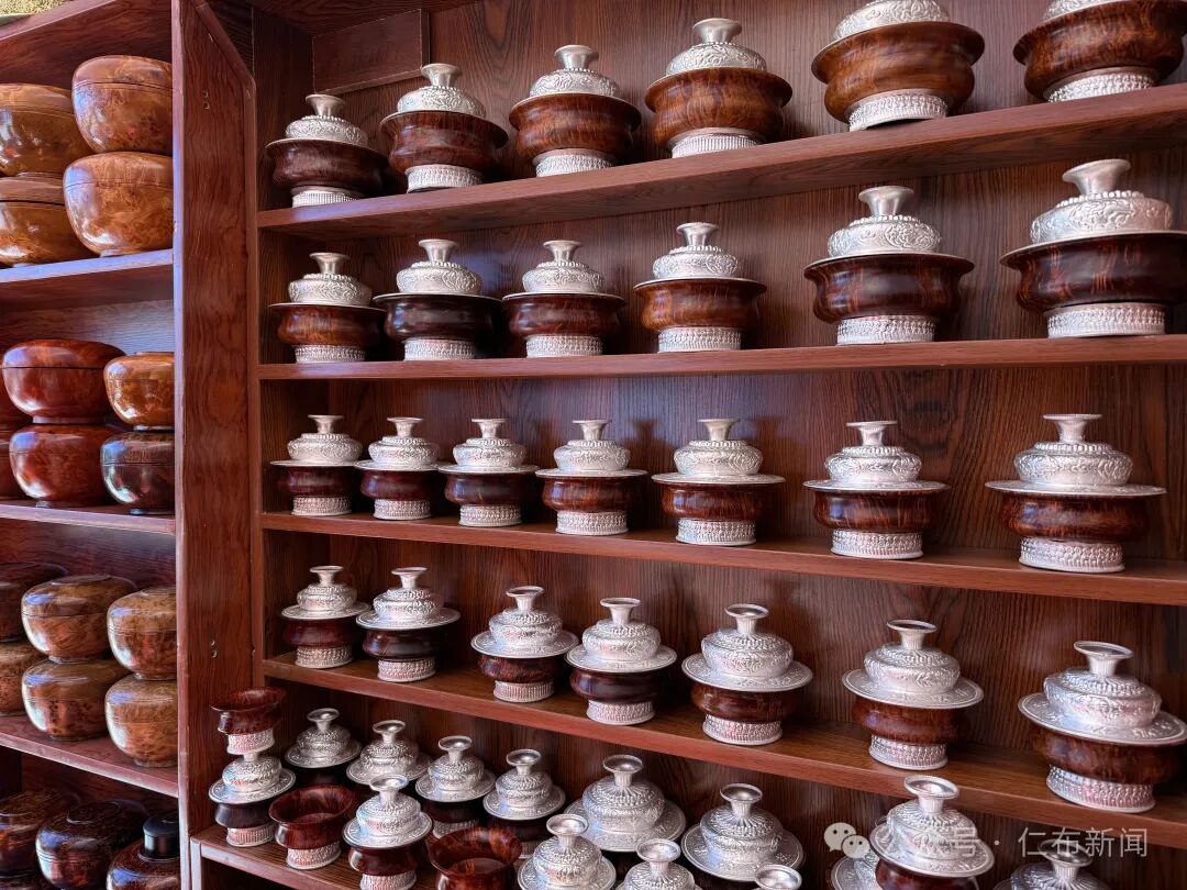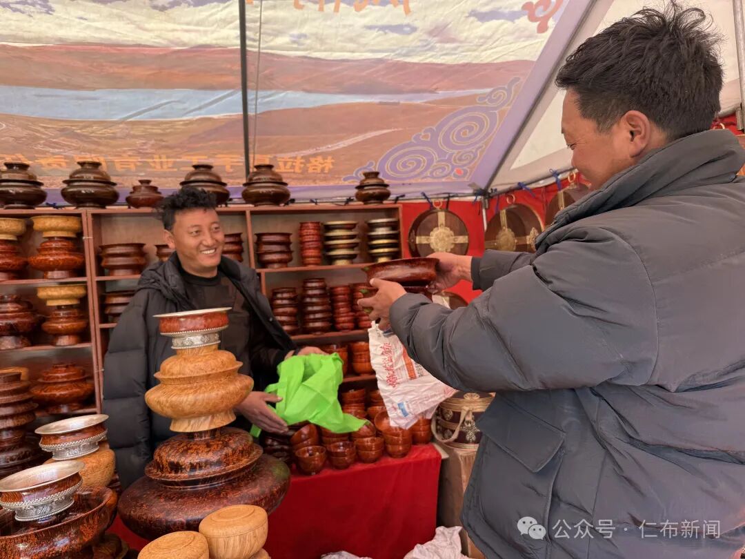 在年货市场同样引人注目的是各种木制品,摊位上,厚重的酥油木碗泛着温润的光,雕花精致的糌粑盒叠放整齐,“我每年罗萨前都来仁布县,已经有好几年了,生意也特别好!”摊位老板洛桑笑着说道。
