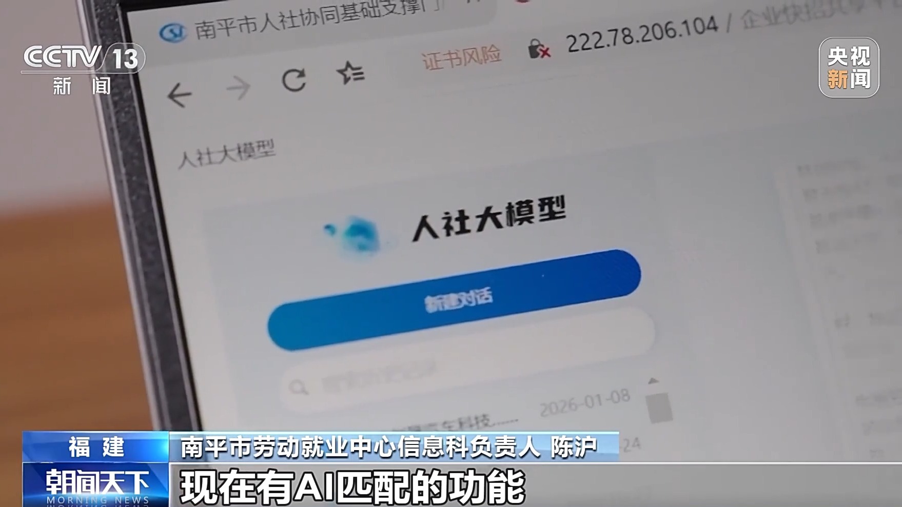 南平市劳动就业中心信息科负责人陈沪:这就是我们内部的用工快招平台,现在有AI匹配的功能,把需求发送出去,系统就会找出一些匹配的求职者信息,然后通过短信的方式发给他们。同时,我们人社局专门组建的一个直播团队,可以深入到你们企业,为你们拍招聘的视频。