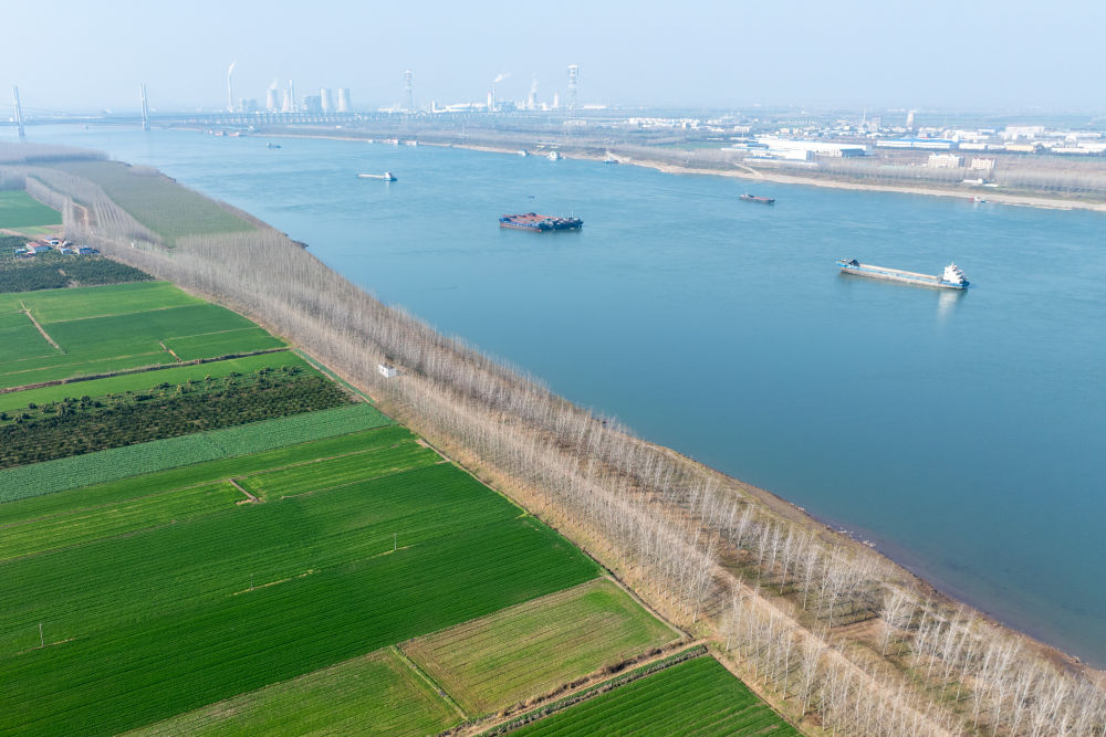 2026年1月6日在湖北省荆州市公安县杨家厂镇长江村拍摄的长江荆州段(无人机照片)。新华社记者 杜子璇 摄
