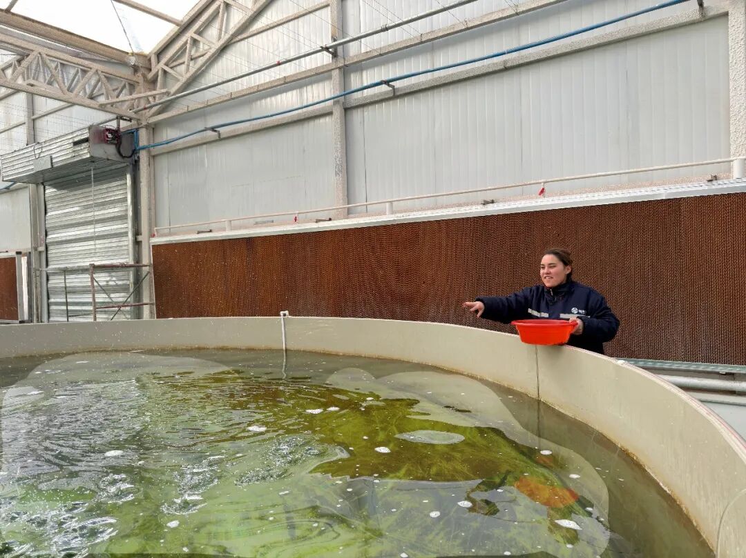 新疆疆渔儿农业科技有限公司员工正在喂养饵料。喀什地区融媒体中心 记者李霖 摄