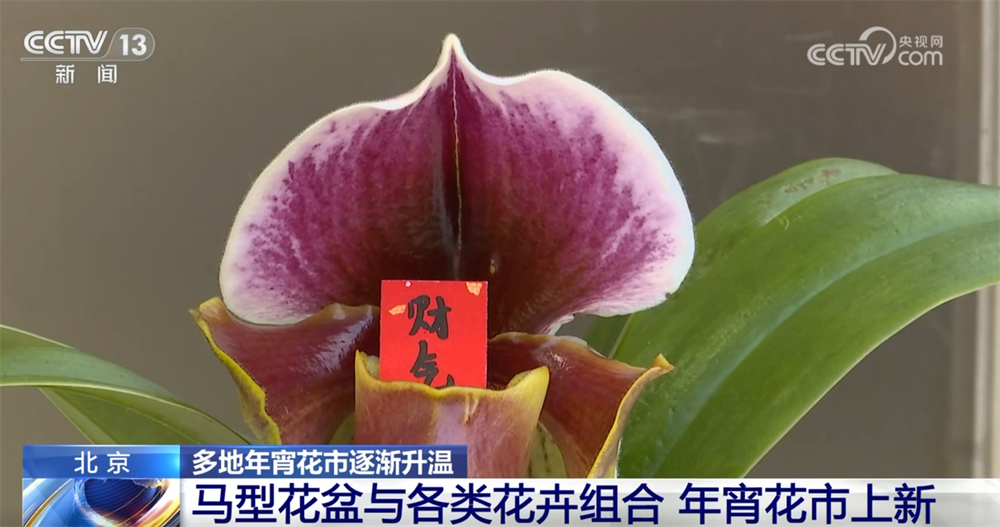 在北京花卉交易中心,各色年宵花争奇斗艳。其中新品兰花“兜兰”十分惹眼,独特的兜形花瓣里,被放入“顺遂”“健康”的祝福卡片,寓意“兜住顺遂”“兜住健康”,祝福满满,年味十足。野生兜兰原本是珍稀植物,经过多年人工驯化,品种产量快速增长,价格也从最初的近千元降至如今百元左右。