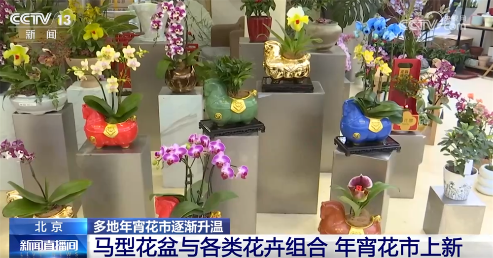 央视网消息:距离马年春节还有不到一个月,全国各地年宵花市场日渐红火。在北京,喜庆花卉植入五花马造型盆器,象征马上开花。新品兜兰,寓意兜住福运,成为年宵花新宠。今年的年宵花市场有哪些新意?我们先去北京的市场看一看。