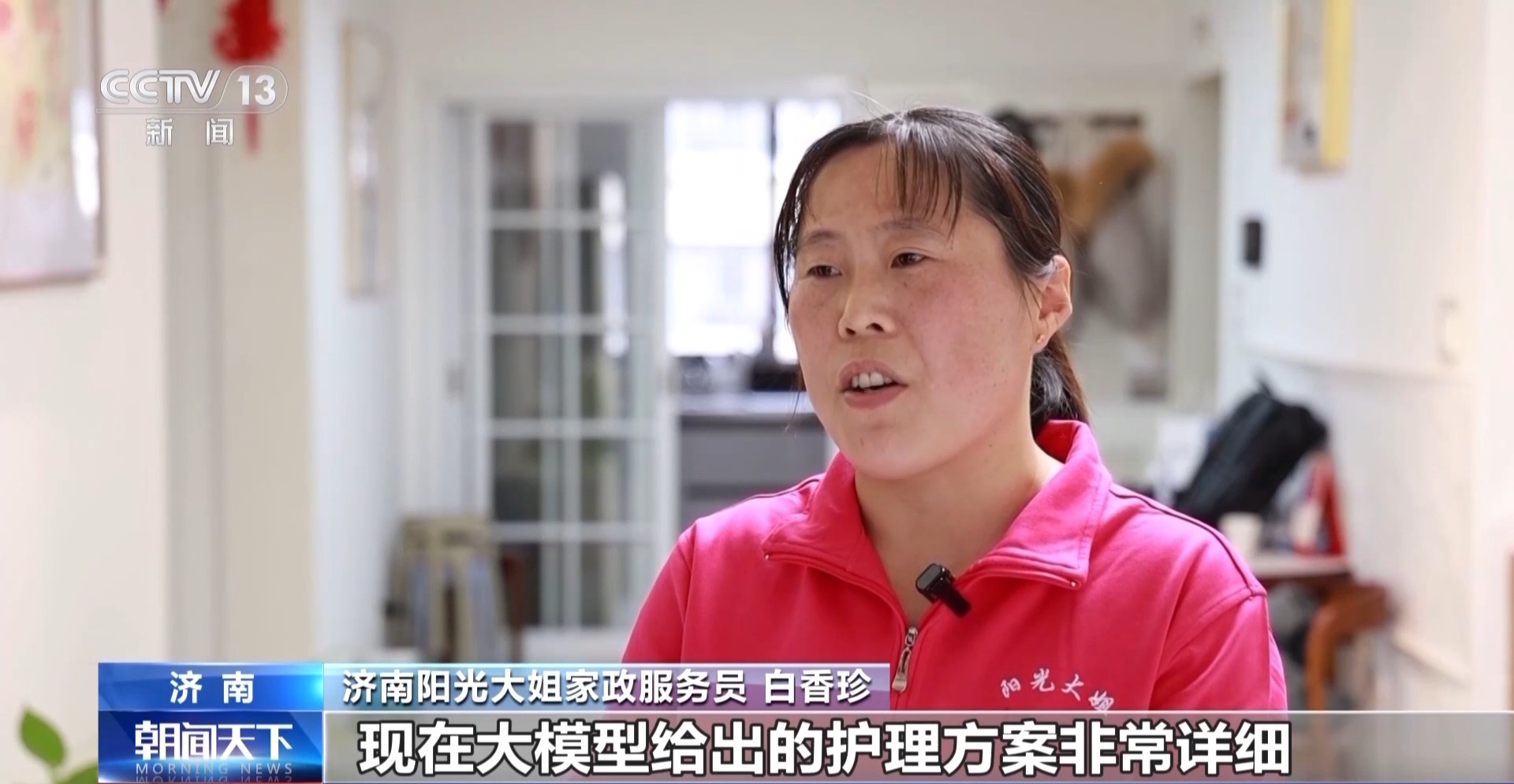 济南阳光大姐家政服务员白香珍:现在大模型给出的护理方案非常详细,能够具体到哪天、哪个时段、做多久的推拿拔罐等等,我相当于有了一个聪明的“助手”。
