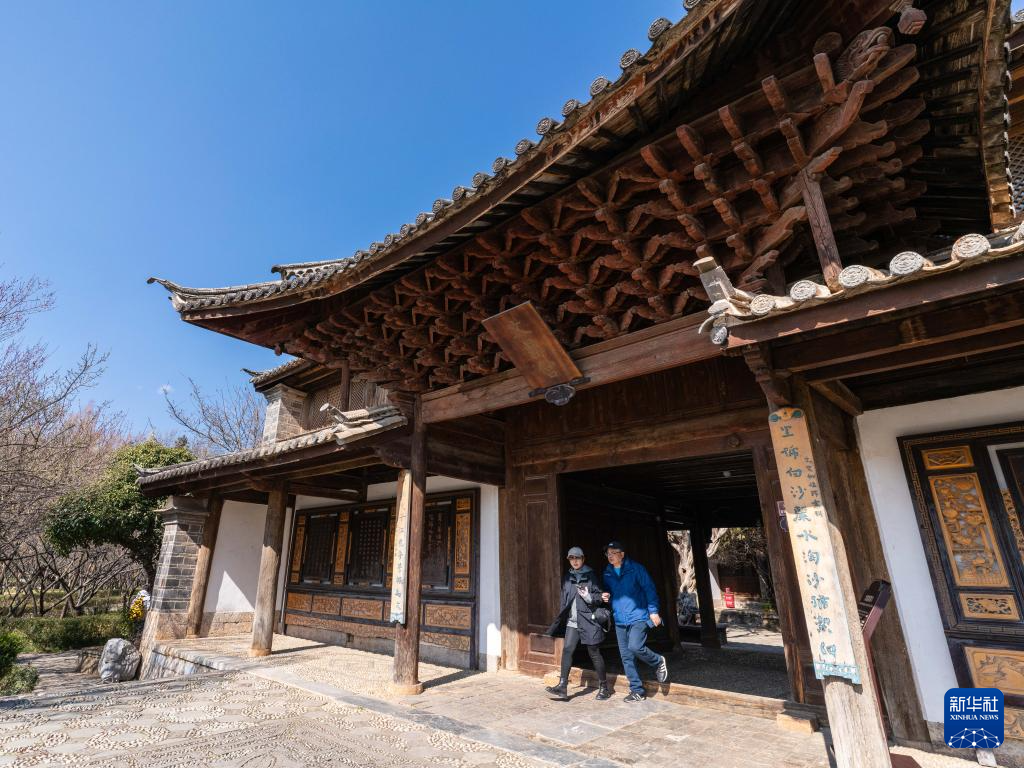 1月15日,杨志坚在白沙壁画博物馆大定阁查看古建筑情况。