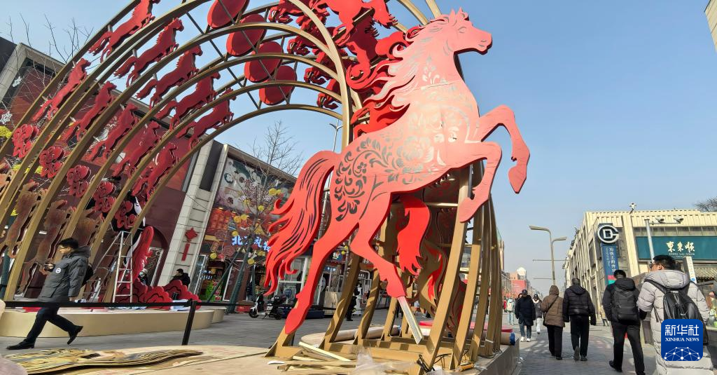 这是王府井商业街上的马年特色彩门(1月15日摄)。