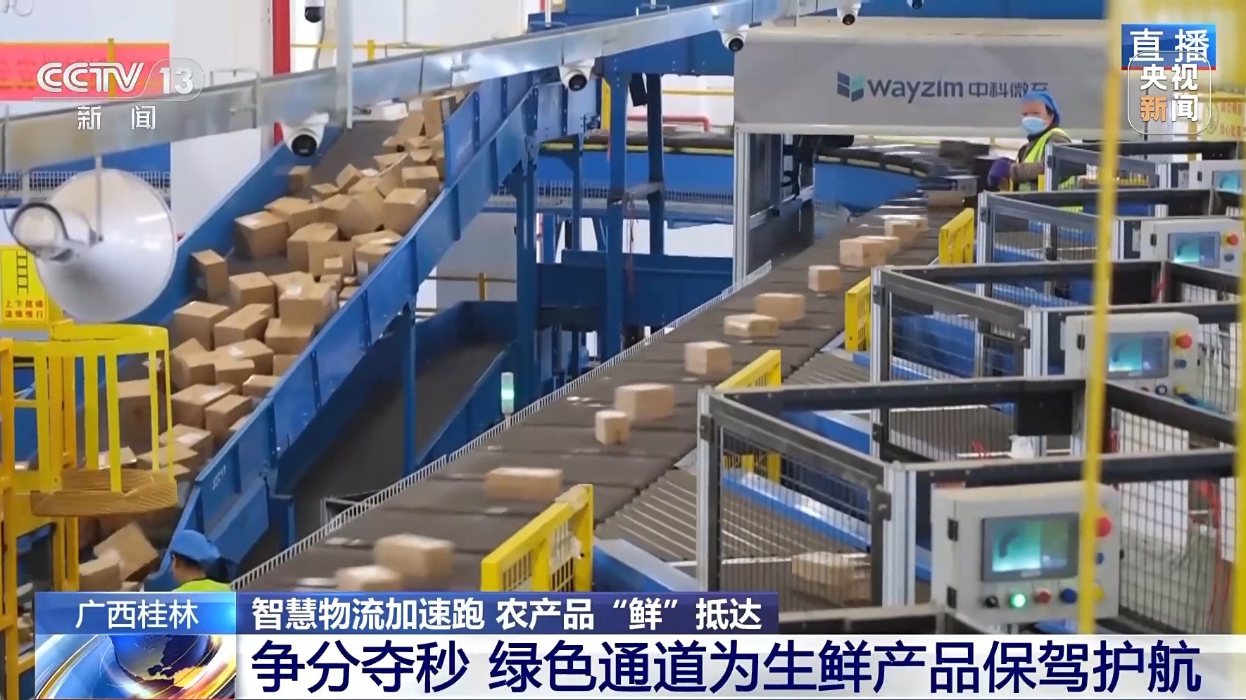 丰富的市场离不开发达的物流。在广西桂林,金黄的砂糖橘、香甜的柿饼等特色农副产品,正借助智慧物流的东风,从田间地头快速奔向全国百姓的餐桌。在当地的一家快递转运中心,依托智能化物流体系,日均处理能力可达110万票。