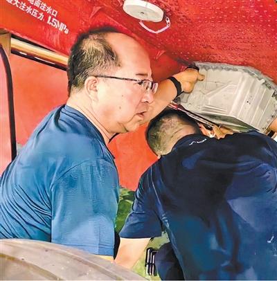 黄领才(左)和同事在排查技术问题。