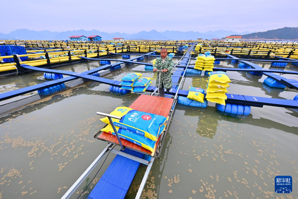 冬季,福建省宁德市海上养殖区一派繁忙景象。船只穿梭于海上田园,渔民在渔排上精心喂养鲍鱼、海参、大黄鱼等。近年来,宁德市通过加强海上管理,优化养殖模式,提升科技应用等措施,促进海洋养殖产业高质量发展,为乡村振兴注入新动能。