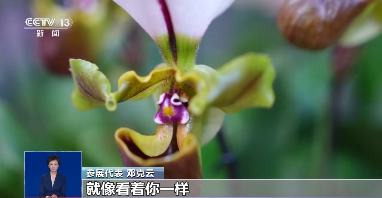 参展代表邓克云:白旗兜兰,“小青蛙”等于它好听的艺名。它的假雄蕊,看着就像一个青蛙趴在田边上,两个眼睛鼓鼓的,就像看着你一样。