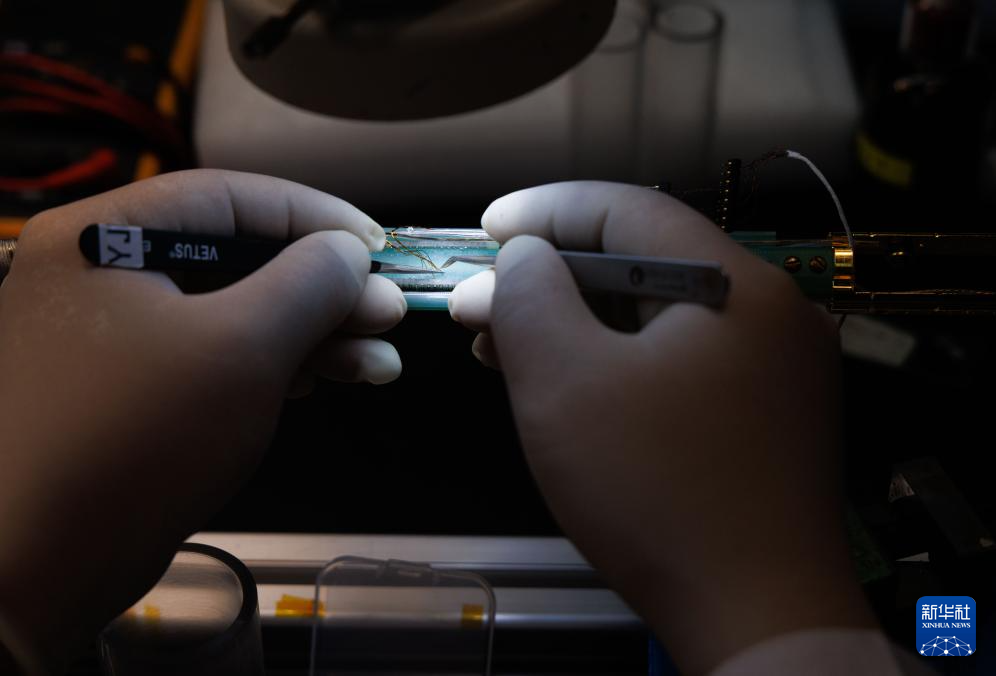 1月26日,在位于北京怀柔的中国科学院物理研究所综合极端条件实验装置极低温强磁场量子振荡实验站,科研人员准备实验测量杆。