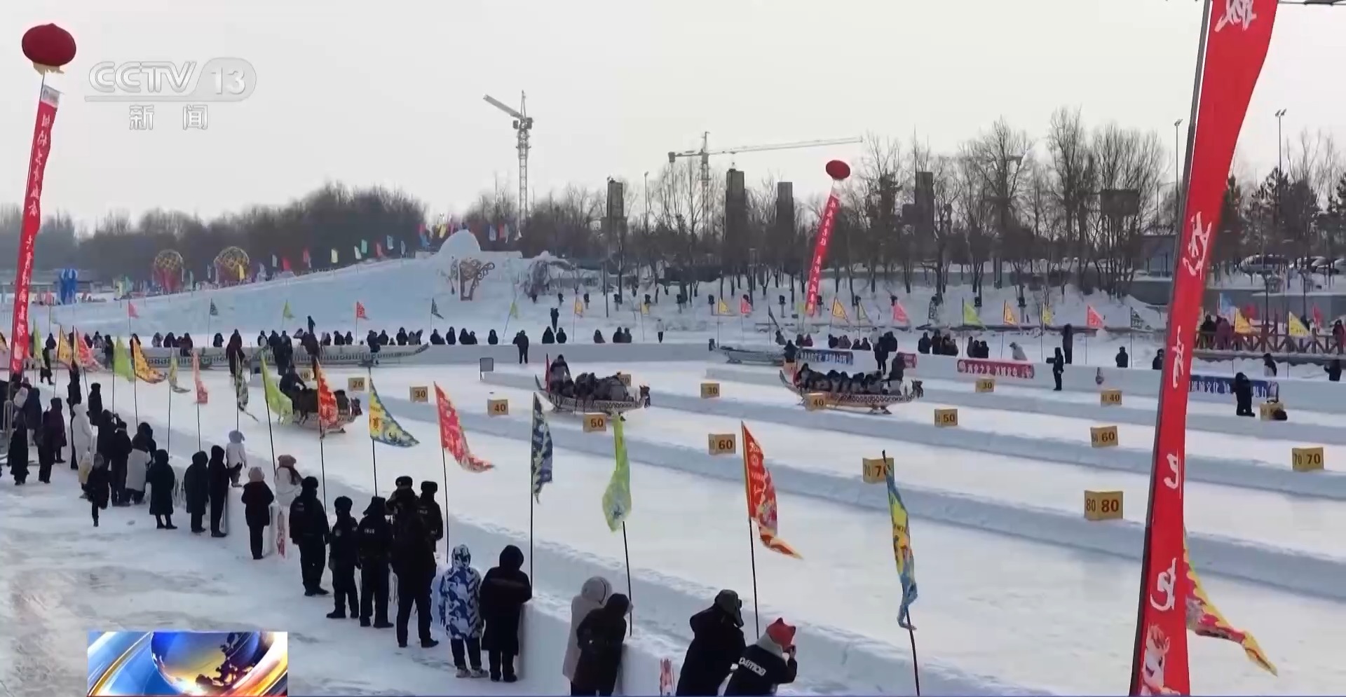 在新疆北屯市,穿城而过的玉带河冰封厚度达到了30多厘米,形成了一个巨大的天然冰场。今年的冰上龙舟赛吸引了来自当地的20支参赛队300名各族群众同场竞技。