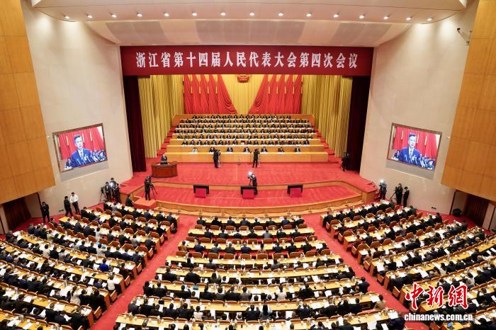 1月14日,浙江省十四届人大四次会议在杭州开幕,浙江省省长刘捷作政府工作报告。张斌 摄