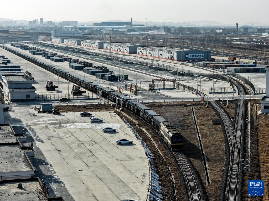 1月27日,中欧班列从乌兰察布中欧班列集散中心驶出(无人机照片)。