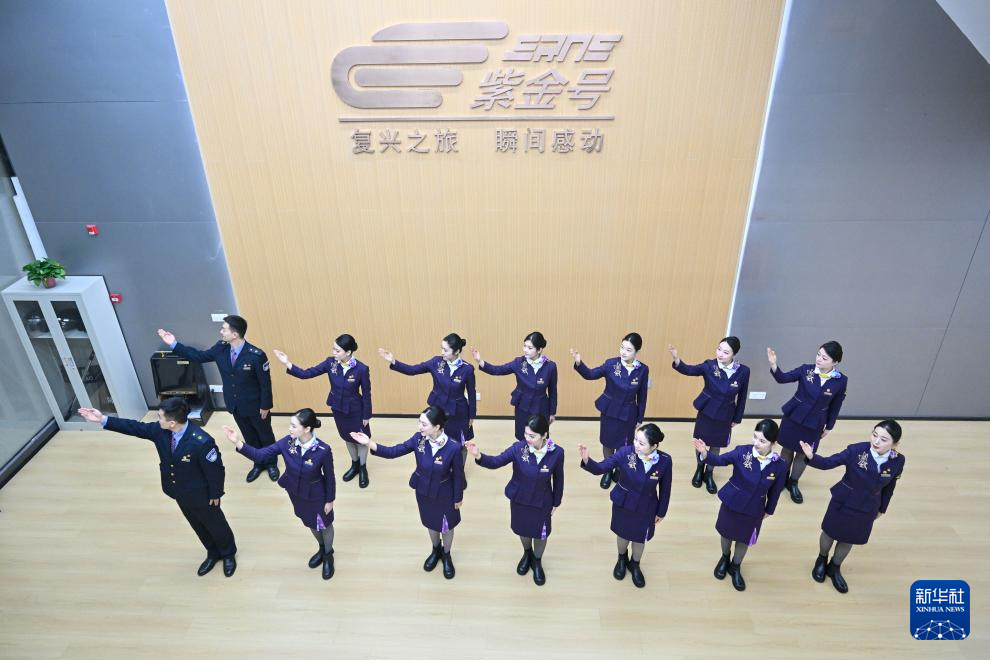 1月28日,中国铁路上海局集团有限公司南京客运段高铁二车队乘务人员进行服务礼仪培训。