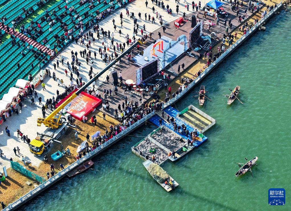 1月31日,2026溱湖湾冬捕活动在江苏省泰州市姜堰区溱湖湾举办,渔民们在溱湖水域开展冬捕作业,湖区水域呈现出一派人欢鱼跃的丰收景象。