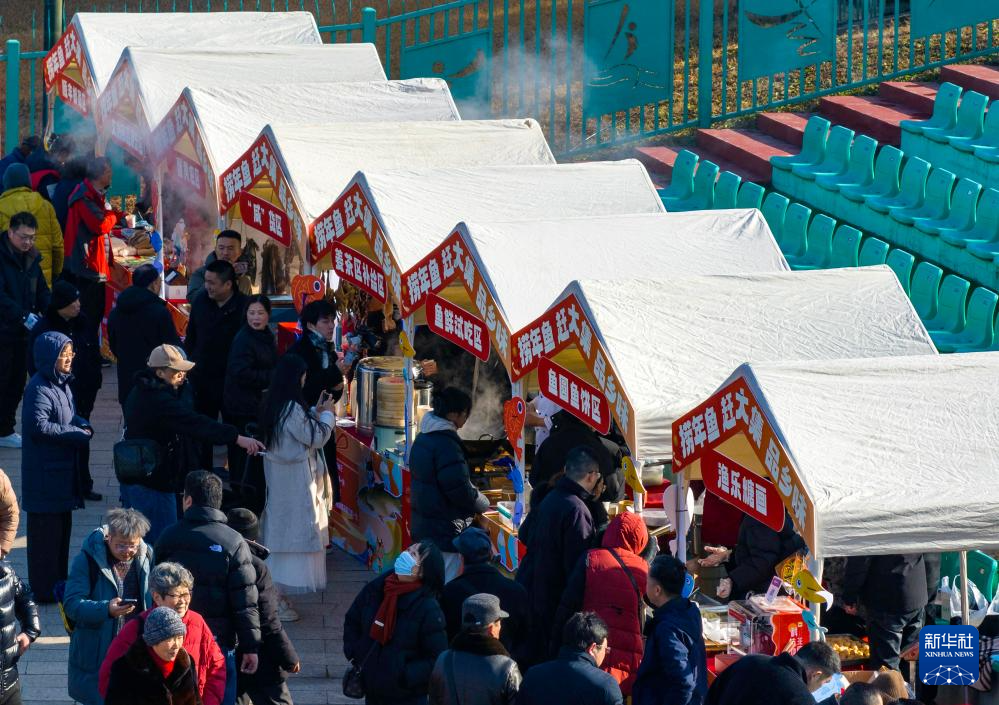 1月30日,山东省泰安市高新区北集坡街道组织的“品书香 赏非遗逛大集”活动热闹开集,丰富多彩的文艺节目和便民服务项目吸引周边村镇居民前来逛大集办年货。
