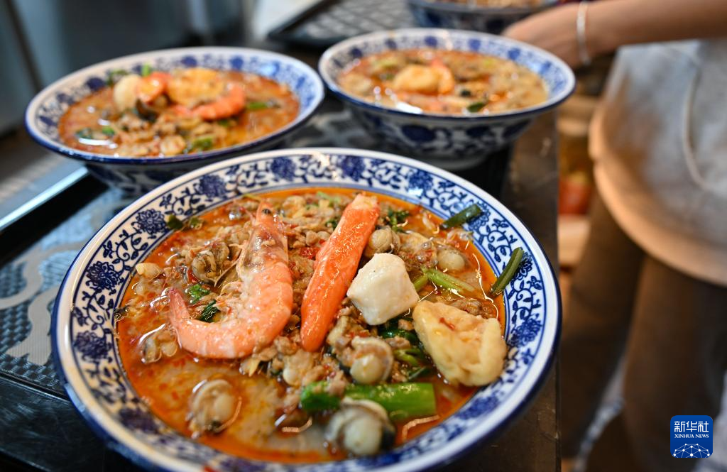 1月29日,游客在文昌市铺前镇一家糟粕醋餐饮店品尝糟粕醋火锅。