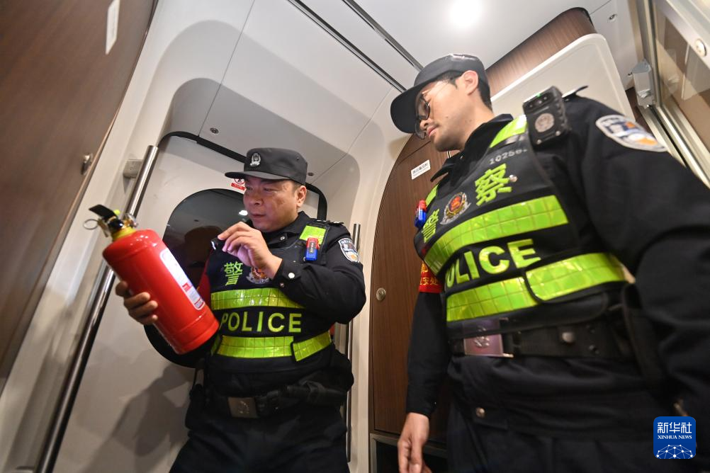 2月2日凌晨,南宁铁路公安局南宁公安处长岗岭站派出所民警在南宁动车所巡逻,认真检查各种设施安全情况,守护即将开启的2026年春运。