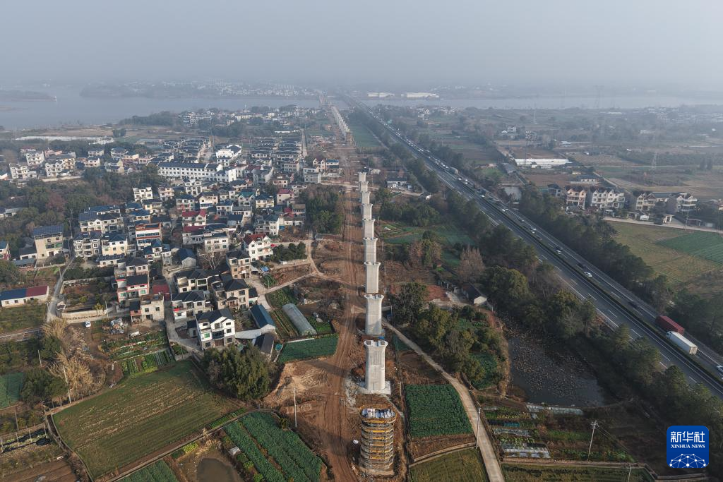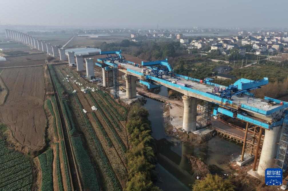 2月3日拍摄的衢丽铁路衢江特大桥跨芝溪连续梁(无人机照片)。