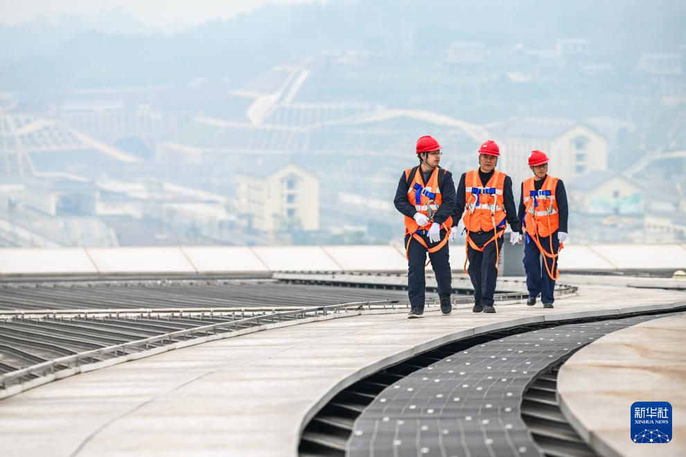 每次作业,他们都需背负工具,沿坡度近80度的爬梯攀至百米高的站房屋顶,在检修步道和马道上穿行,通过连续3至4天的接力作业完成全部检查,排除隐患,确保枢纽“筋骨”强健、运行无虞。