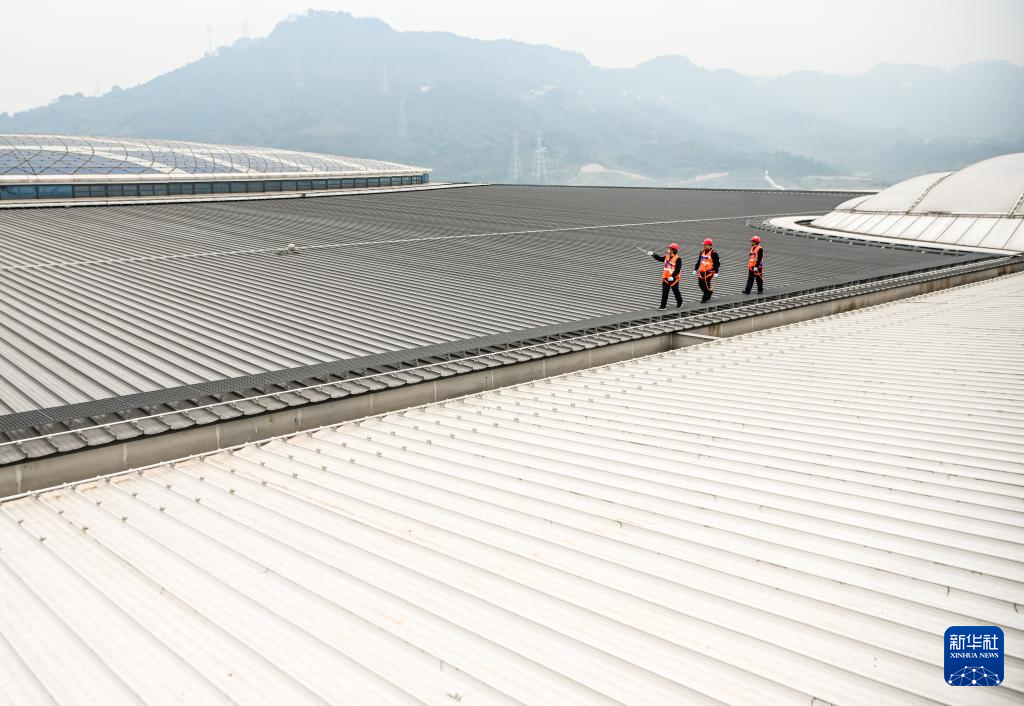 2月3日,鲁奇在重庆东站站房屋顶紧固螺栓。