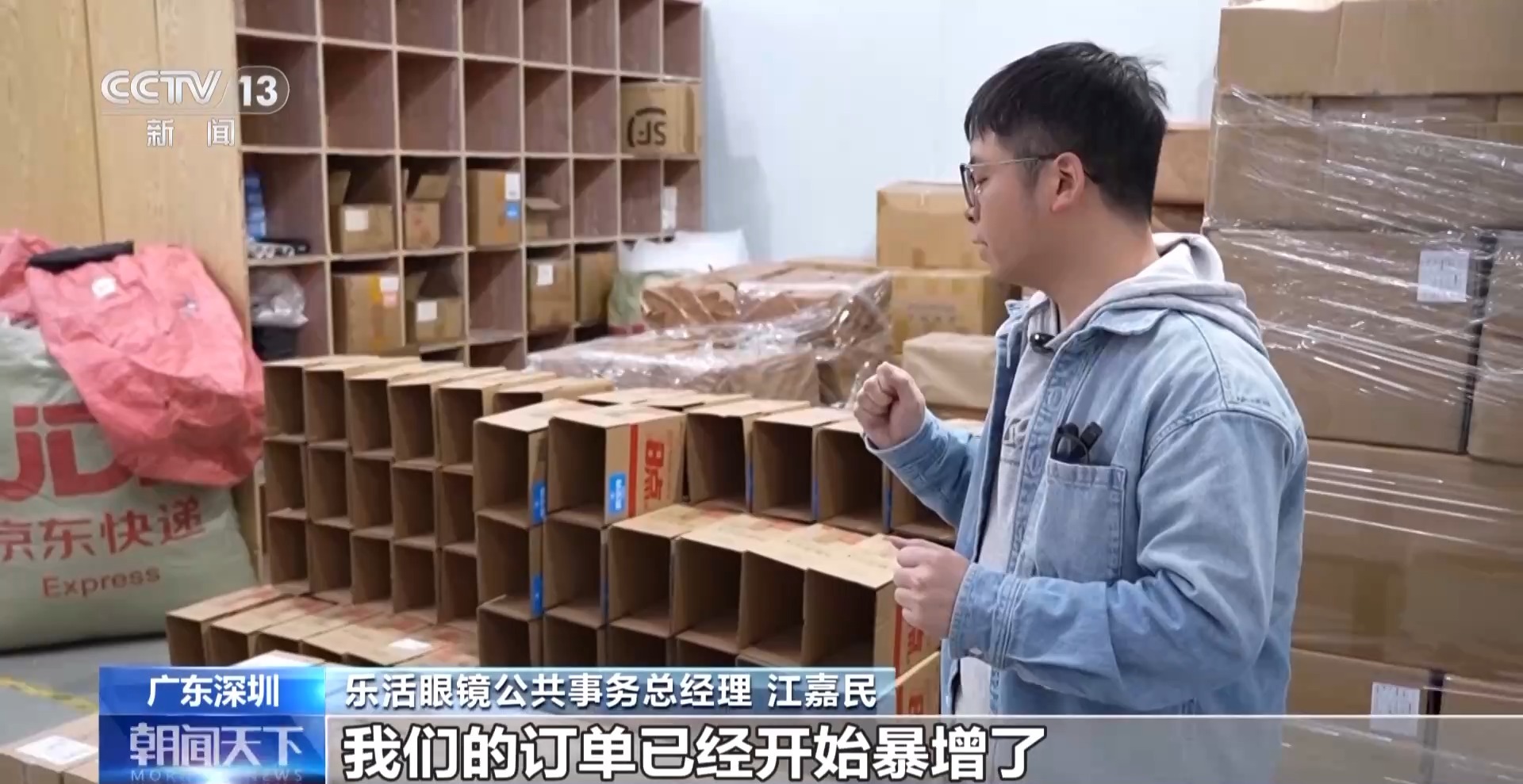 乐活眼镜公共事务总经理江嘉民:“国补”实施之后,我们的订单已经开始暴增了,这边就是我们今天白天的智能眼镜订单,今天晚上预计还会再增加一倍。