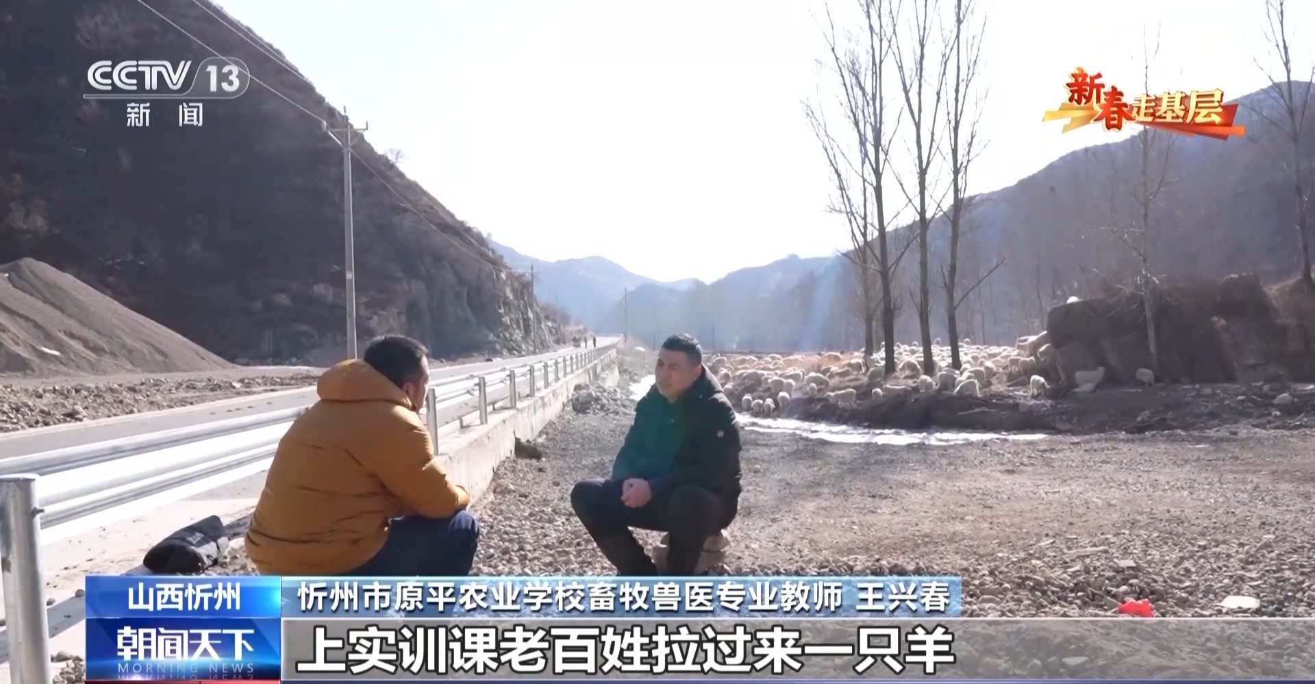 忻州市原平农业学校畜牧兽医专业教师王兴春:上实训课老百姓拉过来一只羊,当时这个山羊得了这个脑包虫病。在完成手术之后,当时这个羊马上就站起来,它也不转圈了。当时和这个养羊老百姓在聊的时候,他们就说,老师们如果说你们要是带上学生来我们村里头,那我们就方便很多了。所以我当时就萌发了一个能把我们科技服务送到老百姓的田间地头,送到他家门口的想法。
