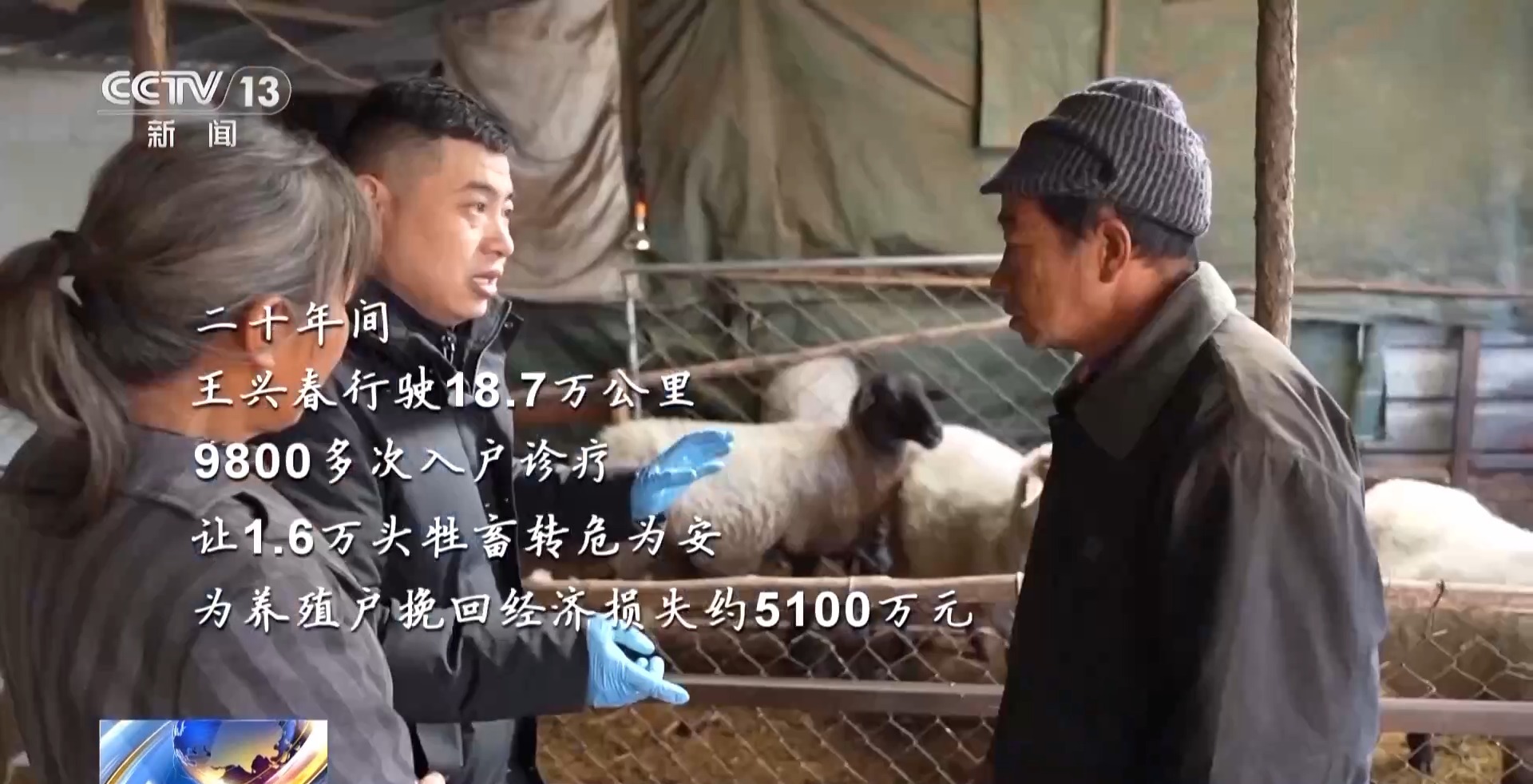 二十年间,王兴春行驶18.7万公里,9800多次入户诊疗,让1.6万头牲畜转危为安,为养殖户挽回经济损失约5100万元。