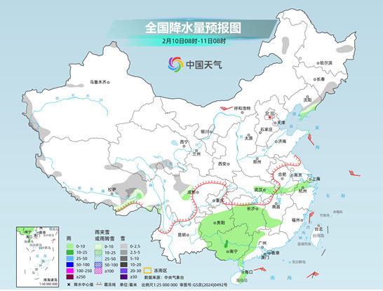 明天,西藏南部和西部、甘肃河西、山西南部、河北南部、河南北部、山东、江苏北部、湖北西部、湖南北部等地部分地区有小到中雪或雨夹雪;西南地区东部、江汉大部、江南大部、江淮、华南北部等地部分地区有小到中雨。