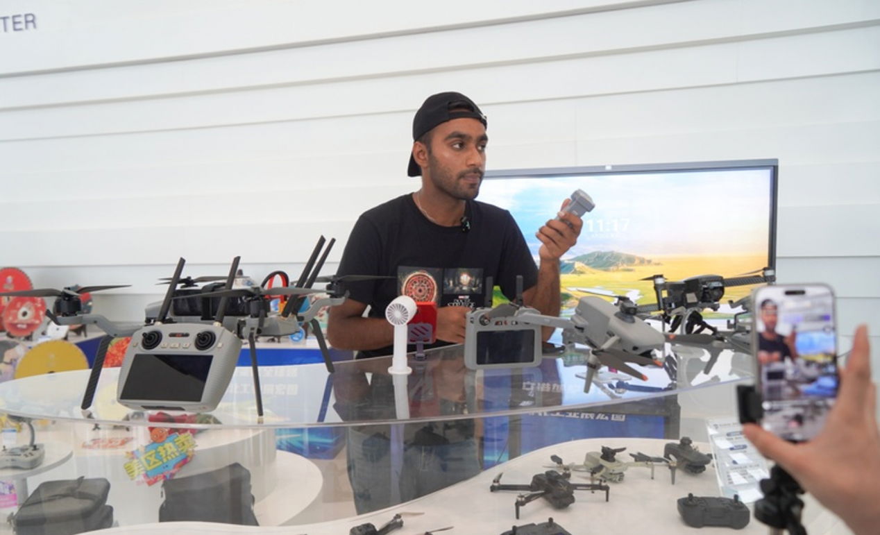 主播阿布在直播间向消费者推荐无人机(央广网记者 邓子依摄)