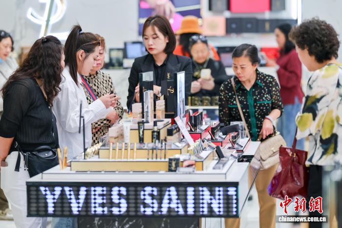 1月18日,顾客在cdf海口国际免税城选购化妆品。 中新网记者骆云飞 摄